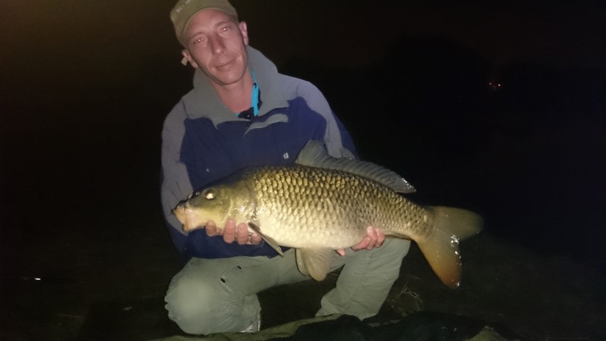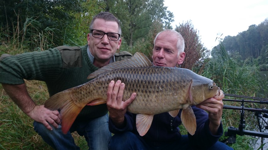 Het weer is uitzonderlijk voor de tijd van het jaar en de koppels hun onderkomens hebben al snel hun opgebouwd en de montages op de gewilde stekken hebben geplaatst. NU alles op zijn plek ligt zie je dat sommige naast bedreven sportvisser ook nog zeer goede koks zijn. Andere doorgewinterde vissers trekken hun telefoon en laten de lokale Chinees of pizzeria iets bezorgen De interne mens word dus goed verzorgd maar word al snel verstoord door de eerste vangst. Maikel Addens, welk samen met Justin van de Heuvel op stek 16 zitten heeft een schubkarper gevangen.